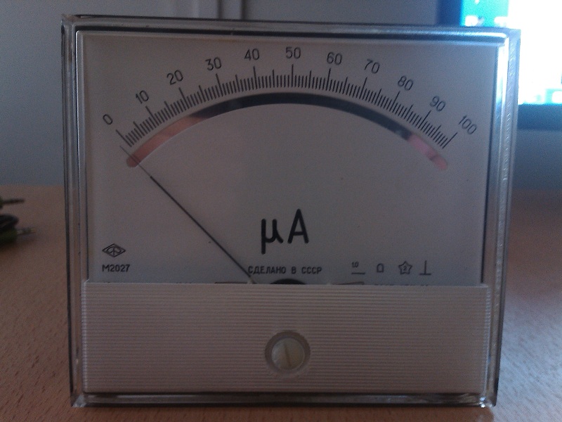 Для начала был куплен микроамперметр М2027:0-100 мкА (цена 325р.)