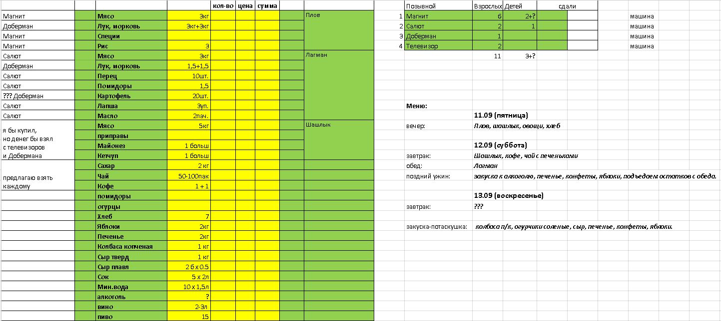 Че может уже задуматься об общем списке продуктов именю на всю Пермскую команду?