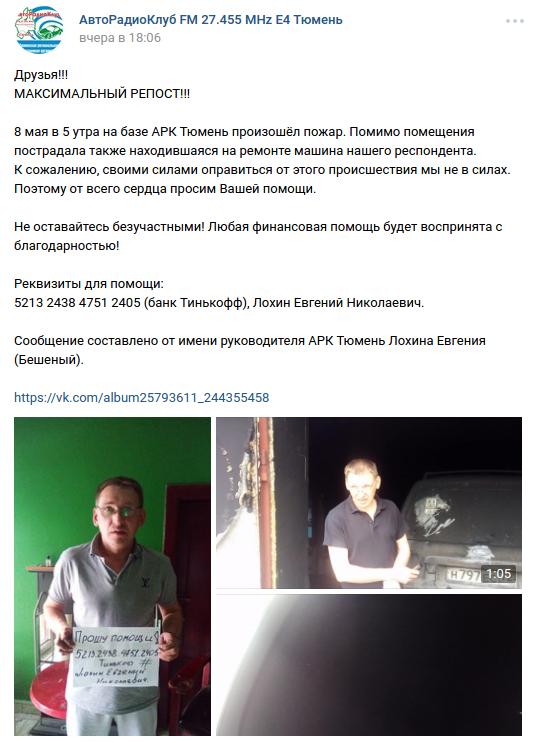 Друзья, в "АРК Тюмень" произошло несчастье:
