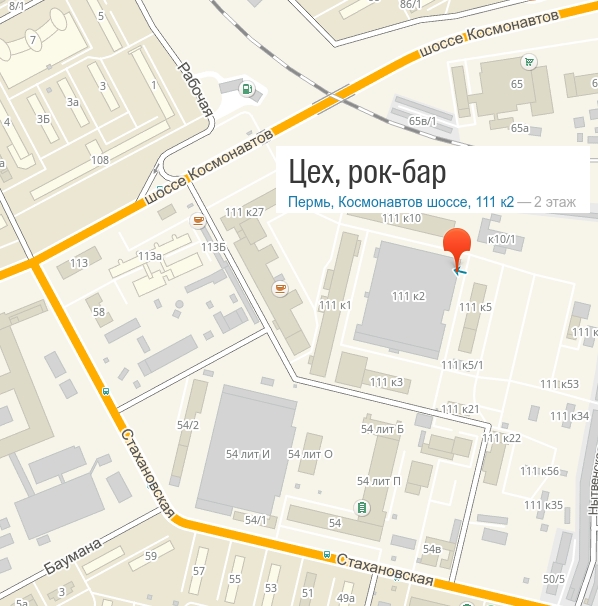 РОК-БАР "ЦЕХ", г. Пермь, Космонавтов шоссе, 111 к2 — 2 этаж (Морион корпус 2, справа от офиса такси Везёт)