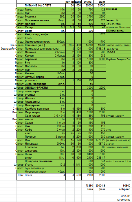 3. Кто не сдавл денег на питание все породукты покупает и везет сам.