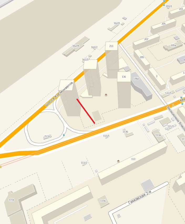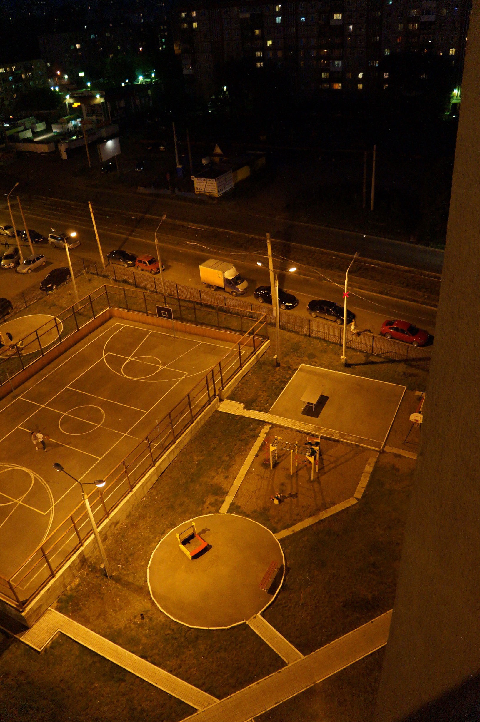 Рис.2 на местности (планировал повесить на столб отмеченный красным крестиком, в реале повесил на столб который немного левее, ближе к углу спортивной площадки)