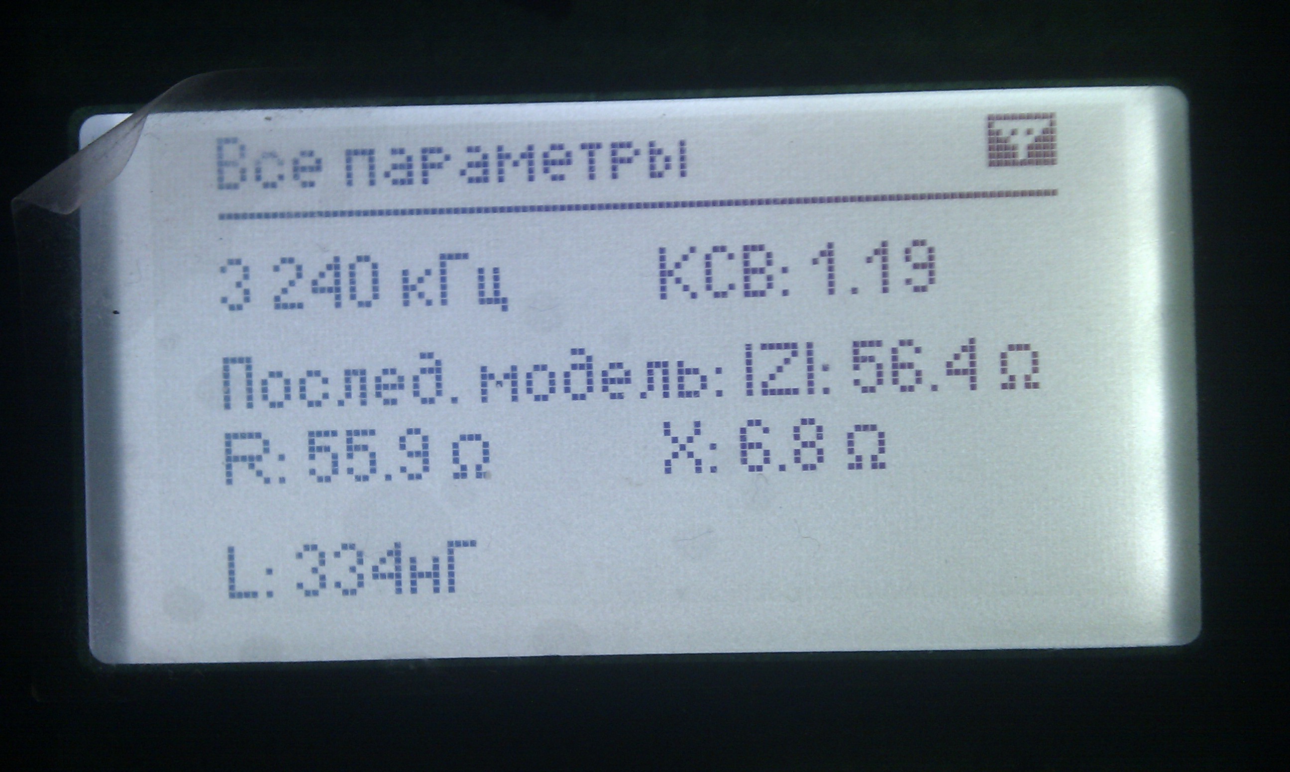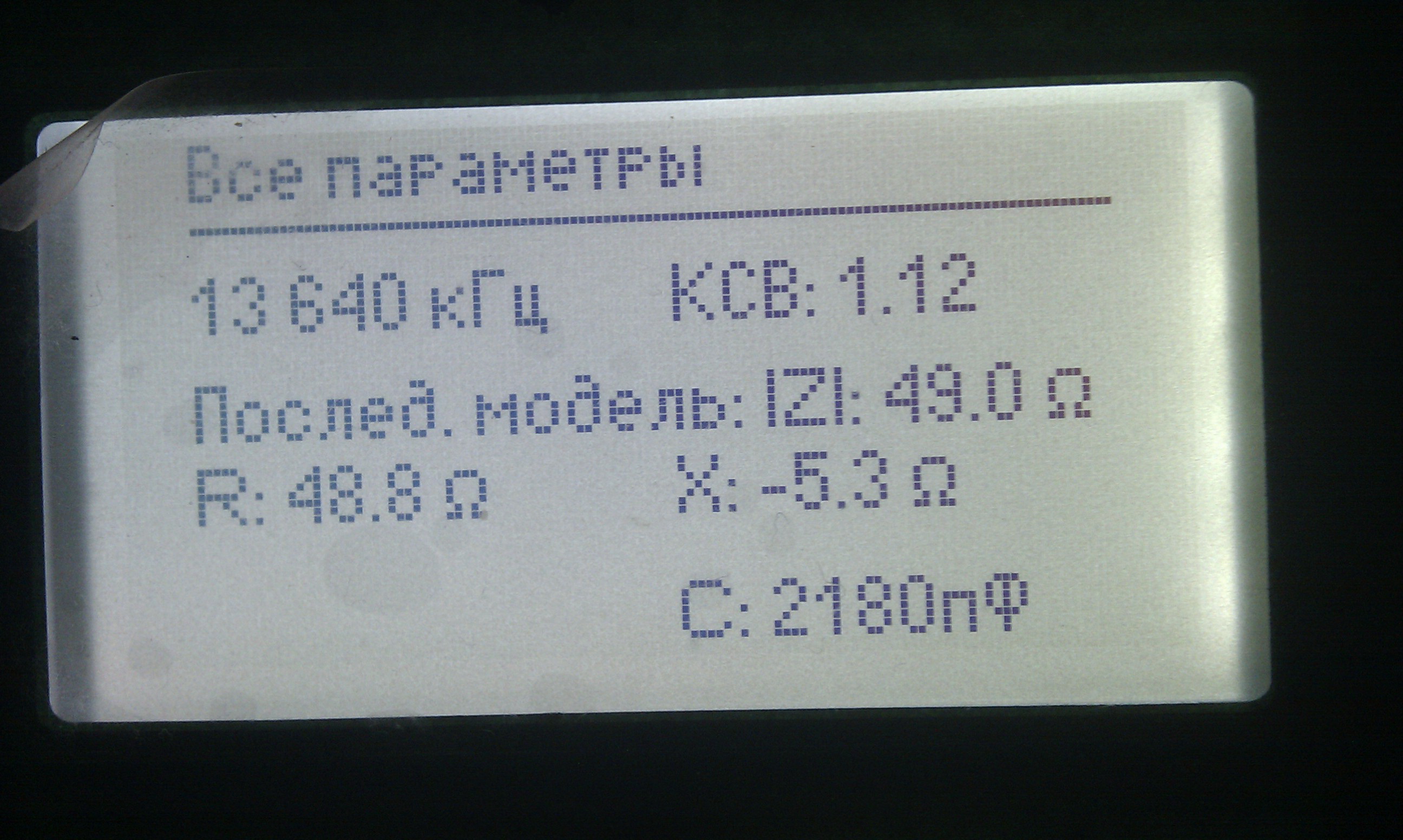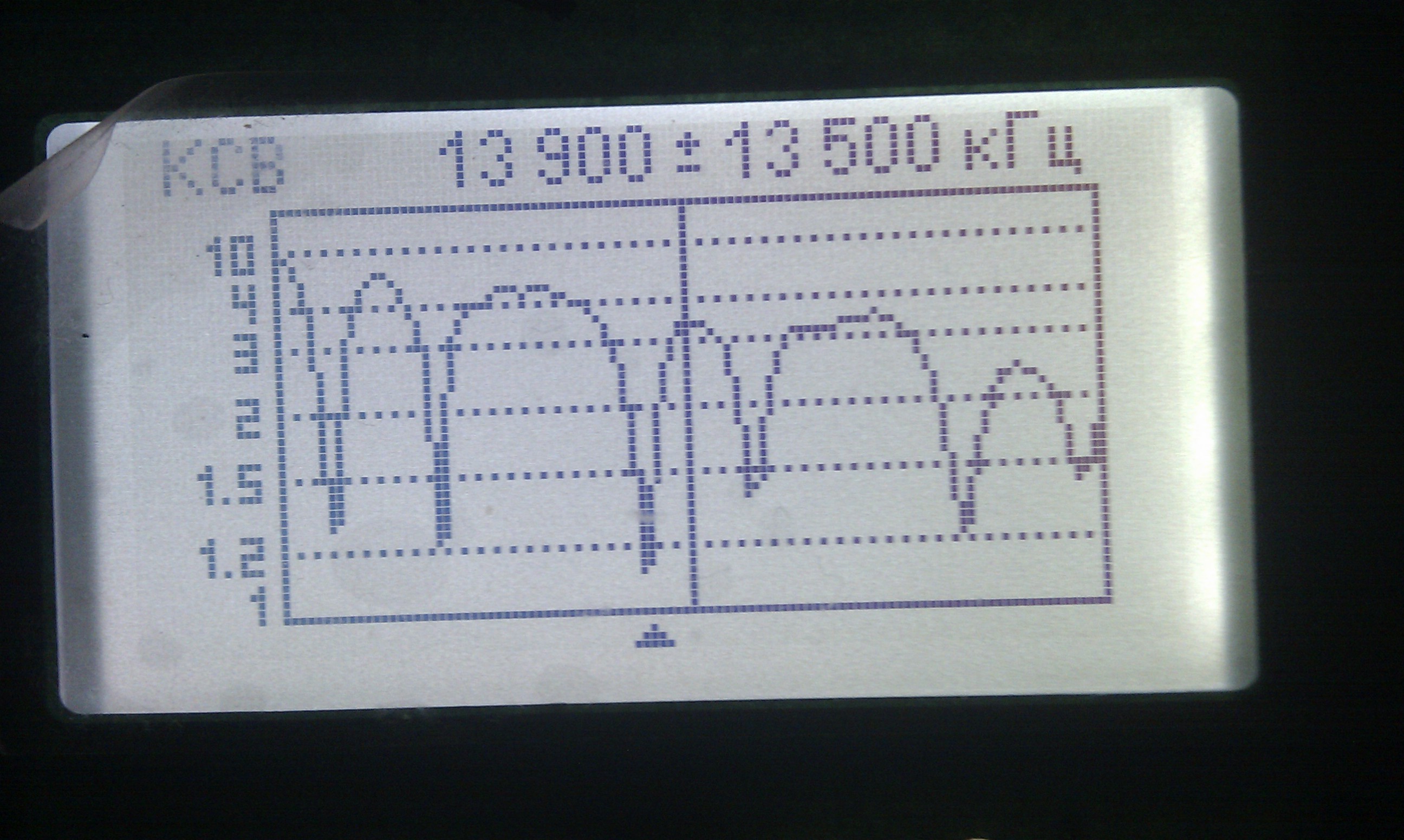 После того как все протянули, подключил антенный анализатор и поглядел что получилось. С первого взгляда мне картинка понравилась. Но при детальном рассмотрении оказалось, что резонансы получились ниже нужных частот. Надо настраивать, т.е. укорачивать антенну, но это значит надо снова залазить на столб и снимать антенну.