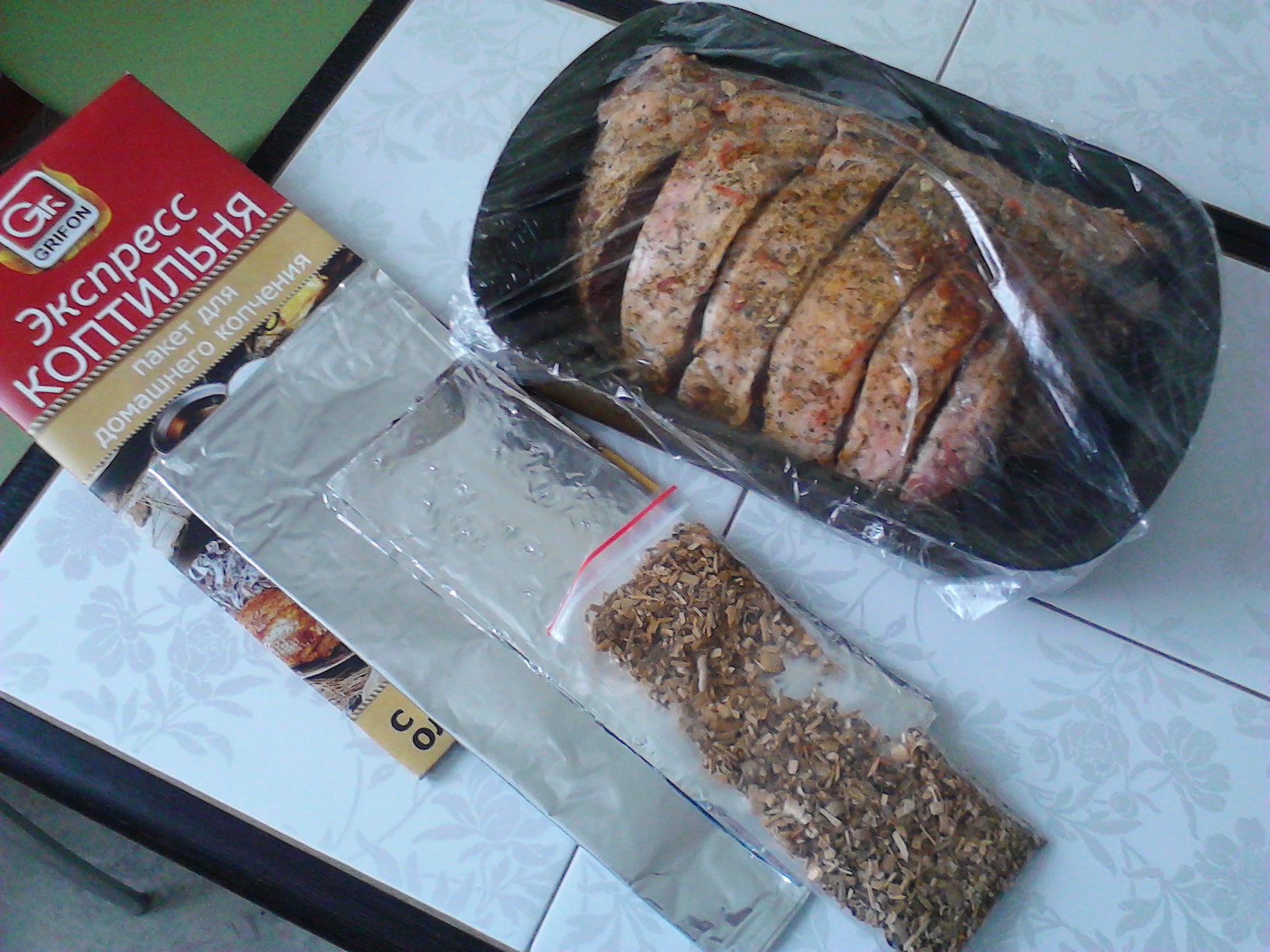 Ну и как же без экспресс коптильни.... дальше можно не описывать - все стандартно... в разогретую духовку до 275 градусов на дно на 1.5 часа... Все! Приятного аппетита!