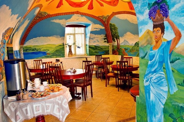 Просторный банкетный зал нам предлагается за 10000 с обеда , и до ночи . Тоесть , на весь день . ( В субботу )