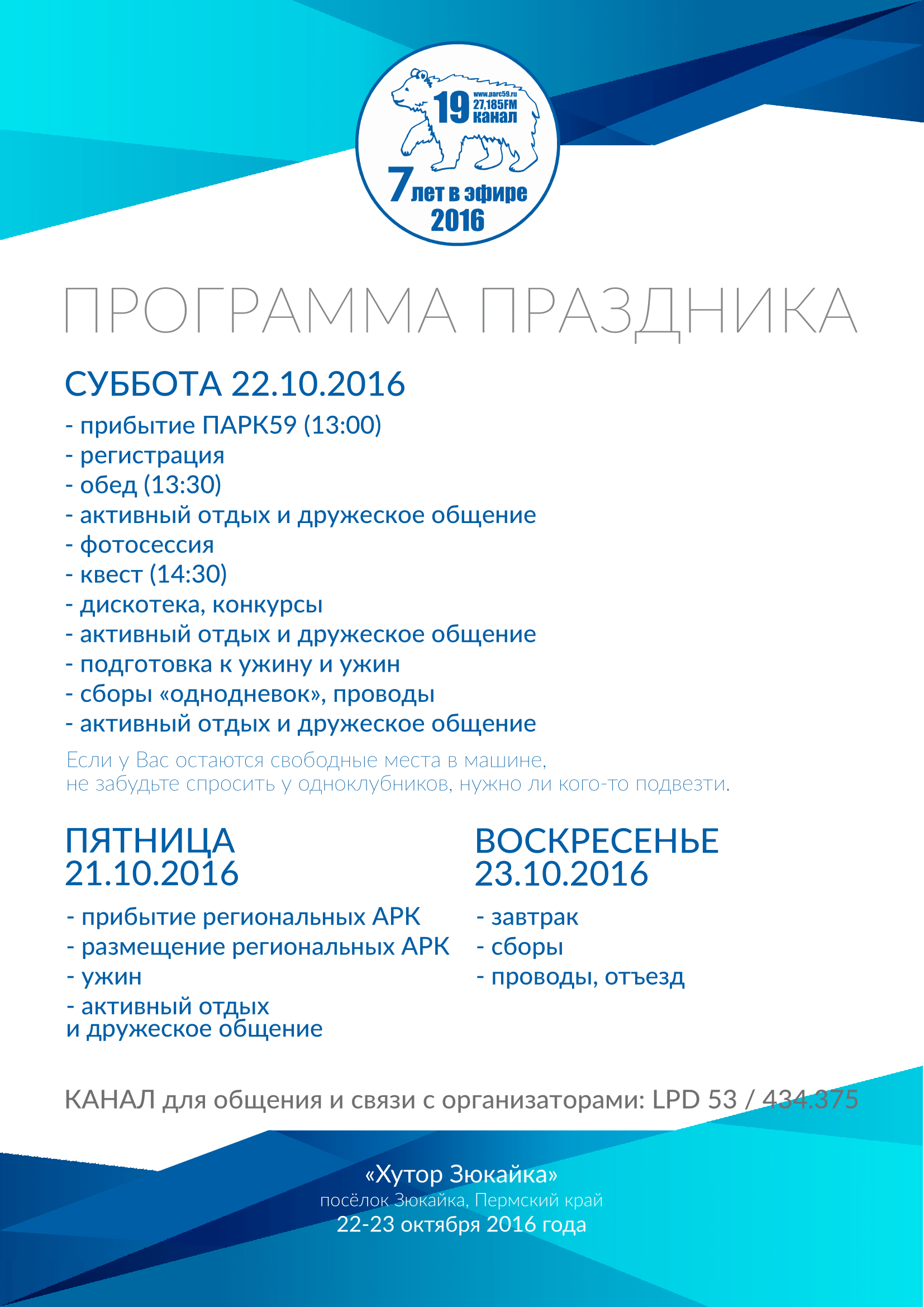 Для тех, кто решит приехать на ДР "Зайцем" (не купив билет) оплатить участие можно будет на месте, стоимость его будет равна стоимости дневного посещение 900р. приехавшие с ночевкой 1500р. При этом быть готовыми скататься по поручению организаторов в магазин докупить необходимое!