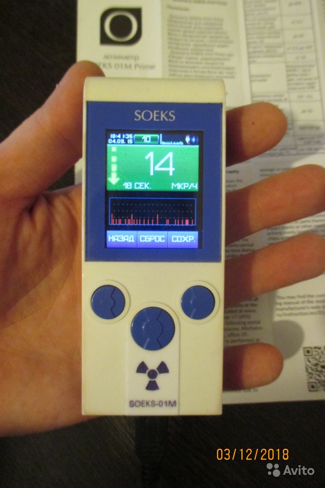 Дозиметр Soeck 01 M Prime. Для радиофобов и радиофилов дозиметр. в отличном состоянии. очень маленький. есть режим поиска. Показывает накопленную дозу. в режиме ожидания(экран выключен) работает 40 дней без подзарядки. Очень хочу радиостанцию.