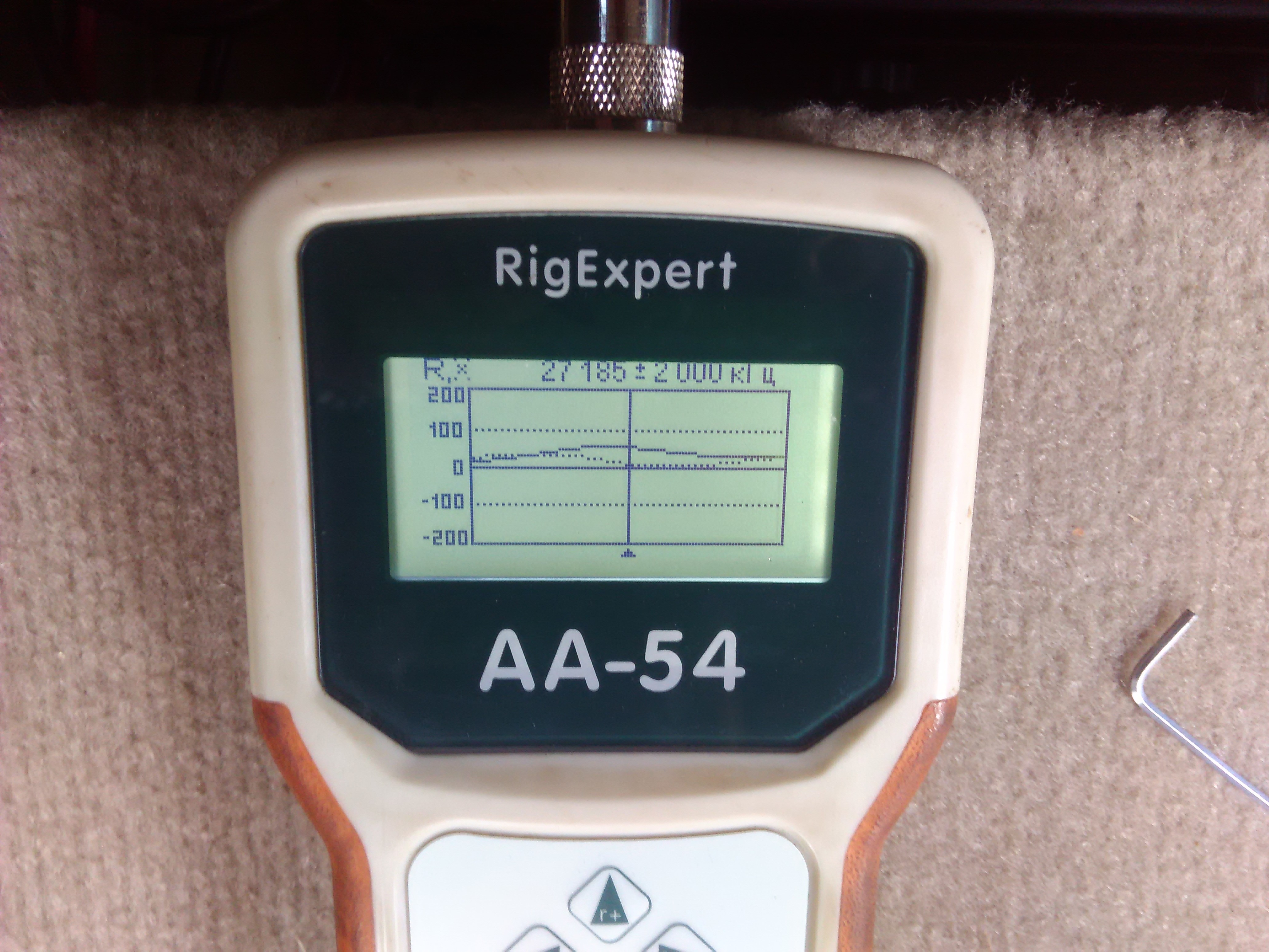В эти выходные подключил вновь установленную антенну. Померил прибором, минимум КСВ оказался выше по частоте (в районе 29 Мгц). Штыря не хватило даже в полностью выдвинутом состоянии. В свое время штырь был подрезан. Сегодня в Радиосиле купил новый штырь, его длина сантиметров на 8-10 больше, но и ее не зватило до идеала. Но картинка стала намного лучше.