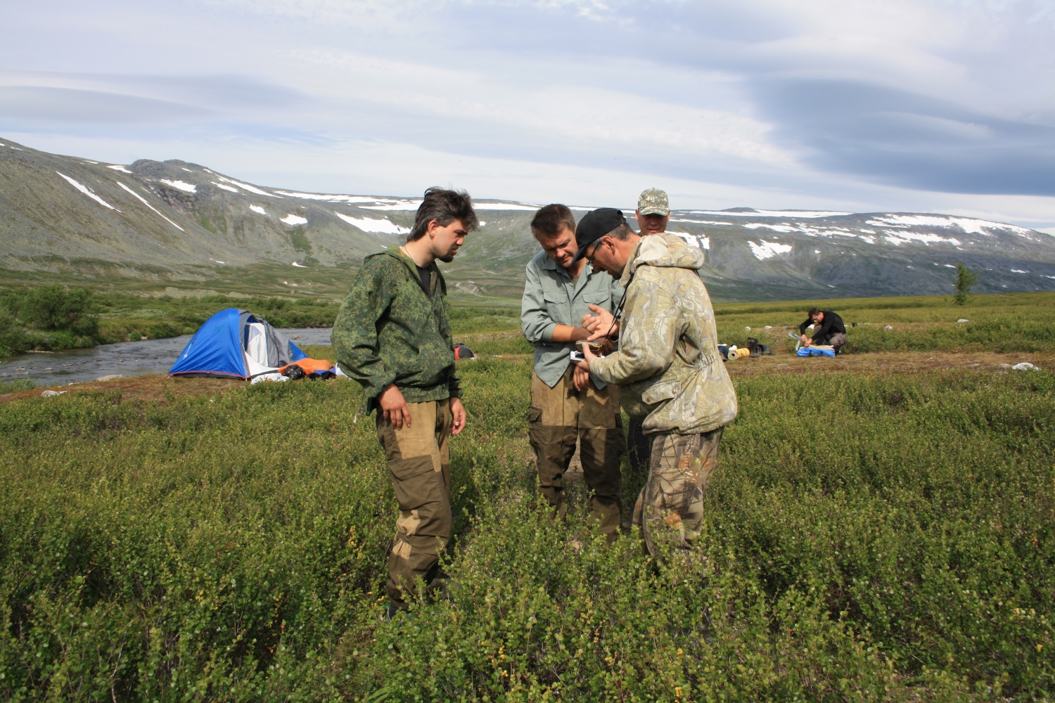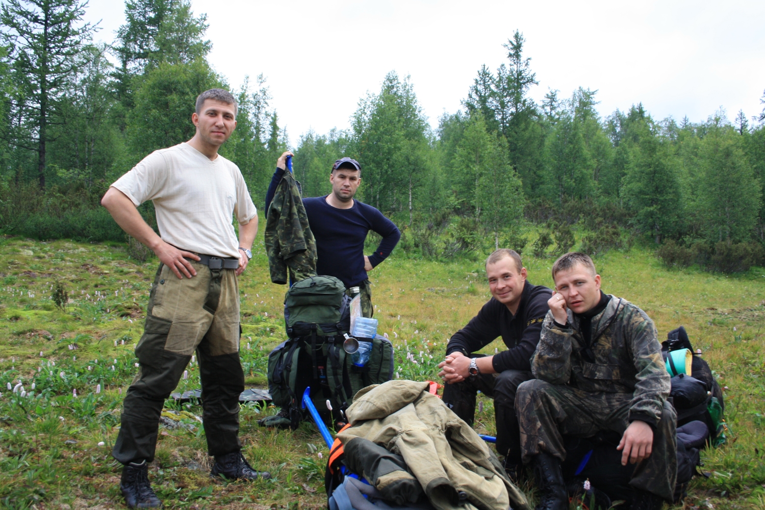 Прерывающийся шипением из ожившей радиостанции, обеспокоенный моим долгим отсутствием Ларискин голос возвращает меня на грешную землю. Возвращаюсь на стоянку. На следующий день выходим. Первые километры под весом рюкзаков, привыкаем к согбенному положению.По дороге встречаем четырех водников из Москвы. Приболели, идут трудно.