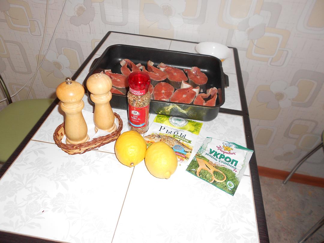 Рыбка нарезана на стейки и подготовлена для легкого маринования: