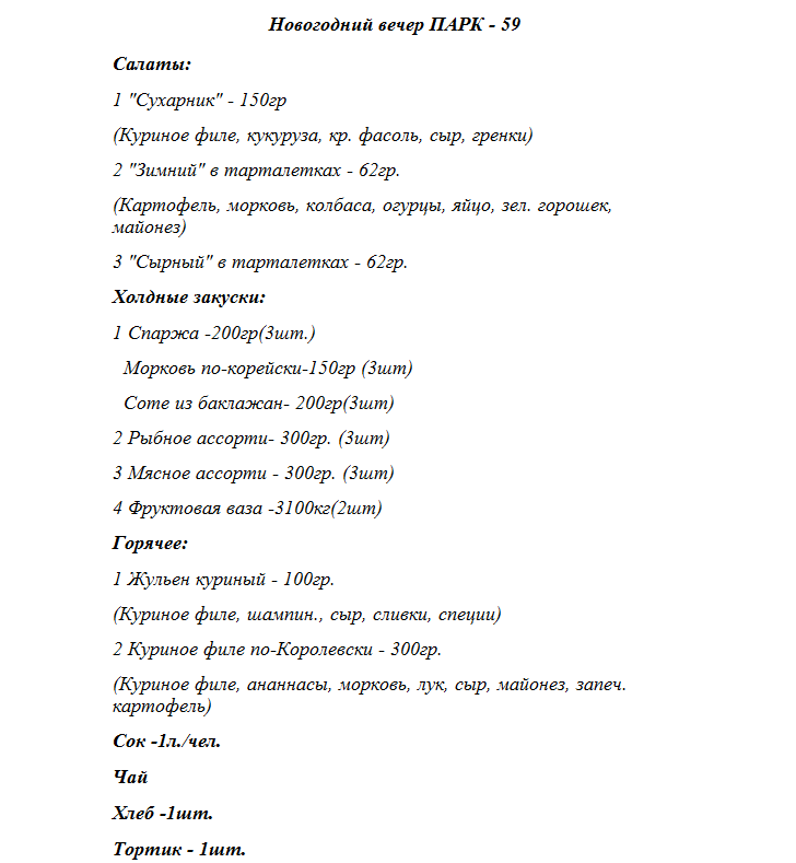 В программе мероприятия, праздничный стол (меня см. выше), ведущая с развлекательными конкурсами, дискотека.