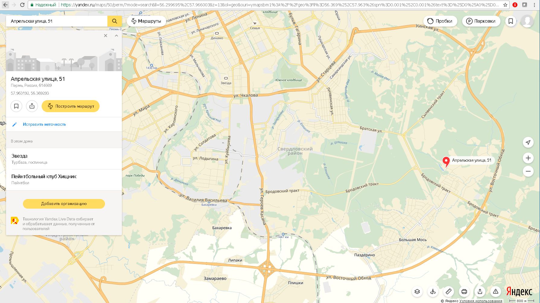 Координаты 57.963192, 56.369293 по Яндекс картам