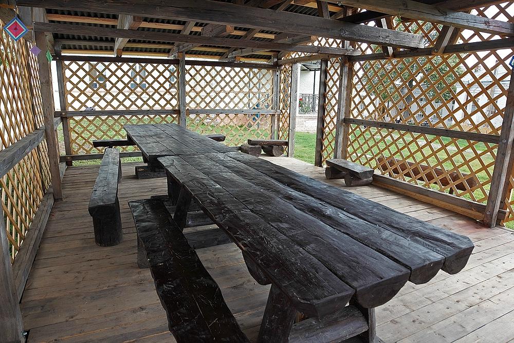 Баня состоит из двух бань , мужской и женской , с общей комнатой отдыха . Номера - Беседка - Записываемся !