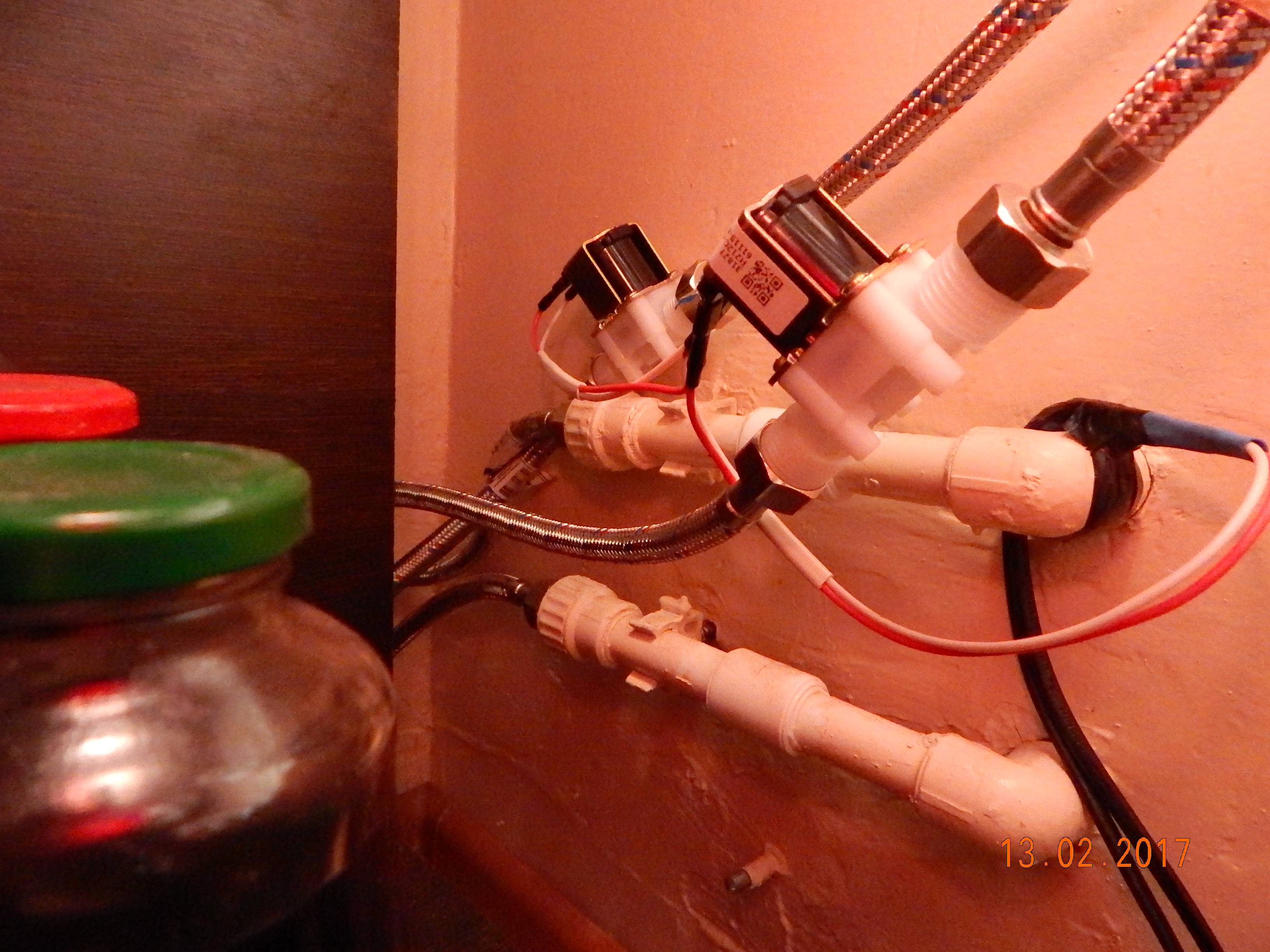 Проблема в том что я установил на кухонный сместитель электро клапана на холодную и горячую воду подцепил к педальке и воткнул в розетку, нажал на педаль водичка побежала сместителем отрегулировал напор и температуру отпустил закрылась и так далее нажал- отпустил- нажал- отпустил :ya_hoo_oo: