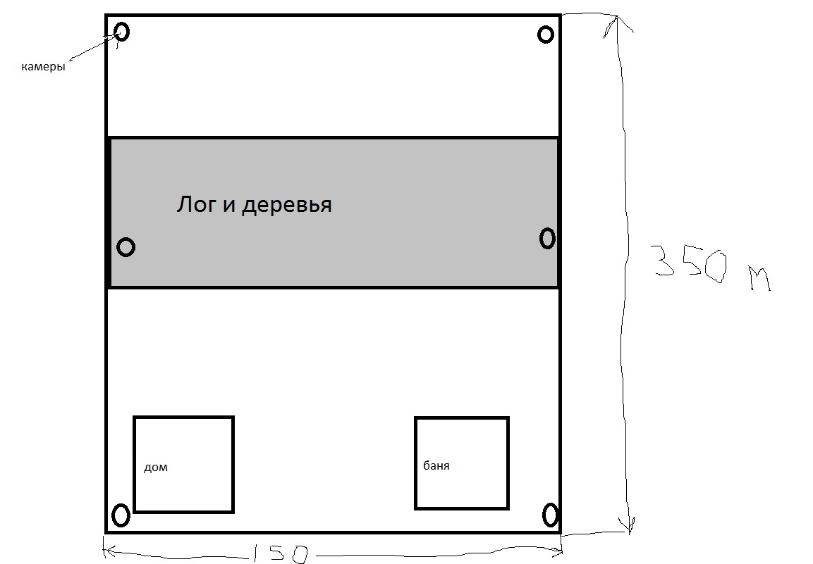 Вот примерная схема,и поляна с домом находится выше той,которая за логом.Ясень писал(а):Ты бы хоть схему нарисовал, что хочешь с расположением препятствий и мест установки камер. Может на самом деле проще взять wi-fi камеры + направленные активные антенны..... в 600 метров по улице для wi-fi достижимая величина