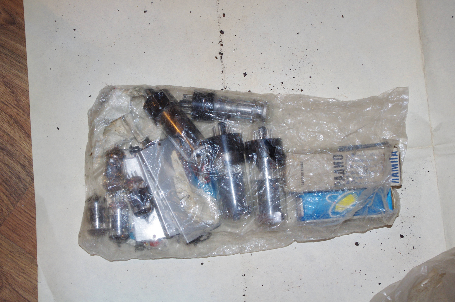 1. какие то непонятные болты, ест предположение, что от кульмана 2.аппарат для приготовления "живой и мертвой воды" 3. гвозди мебельные и не только мебельные - отдал 4.электродвигатели - отдал 5.инструмент 6.радиолампы 7.мышеловка 8.какие то непонятные пробки, есть предположение, что для производства самогона